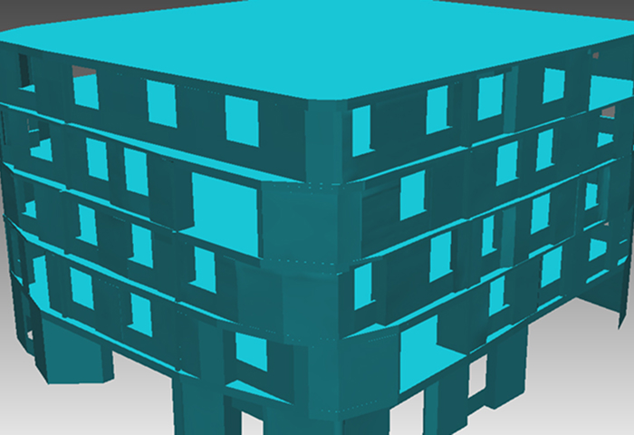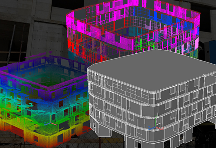 The concrete substructure was scanned for the purpose of designing a secondary ventilation facade. The client received a CAD model of the existing situation.