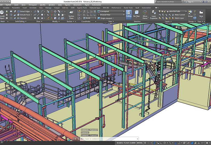 Based on laser scanning, an architectural and MEP model of the existing condition of the building was created for the purpose of reconstruction.