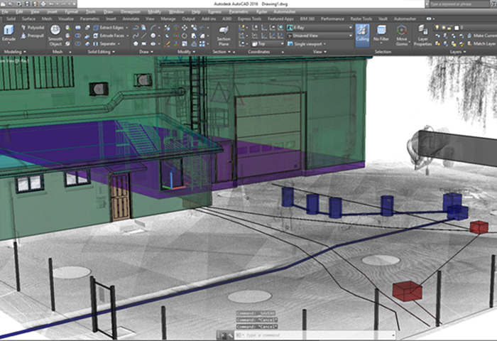 We mapped the underground and above-ground infrastructure in a large production area. A unified 3D model of the terrain and all underground and above-ground infrastructure was created. Manholes and pipelines are equipped with attribute data, making the model a BIM that users can utilize as a database.